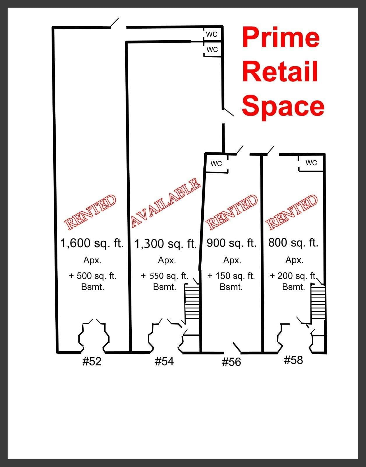 An approximately 1.200 sqft double window retail storefront with 11' high original tin ceilings with a semi-finished, approximately 400 sqft basement which can be utilized as needed. The service door opens to a communal courtyard with side access to Crown Street.